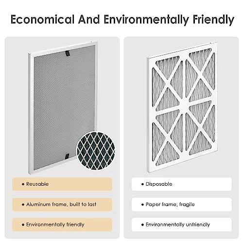- ✨ECONOMICAL AND ENVIRONMENTAL: The metal washable air filter was for long-term home air filter savings and less to disposal of disposable air filter waste.